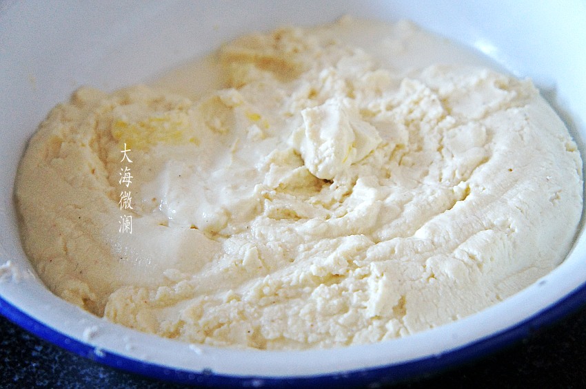 提前一天晚上将发酵好的粘玉米面取回来解冻,小疙瘩全部化开即可使用。