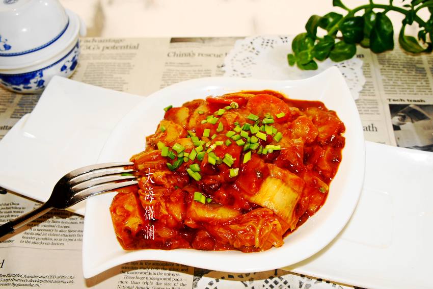 2、出锅前可以尝尝味道,感觉不够咸可以加一点盐,喜欢甜味的,可以再加一点白糖。感觉辣味不足的可以再加点辣椒面,随个人喜欢的口味调理吧,我什么都没加,觉得酸辣适口,全家人都爱吃。