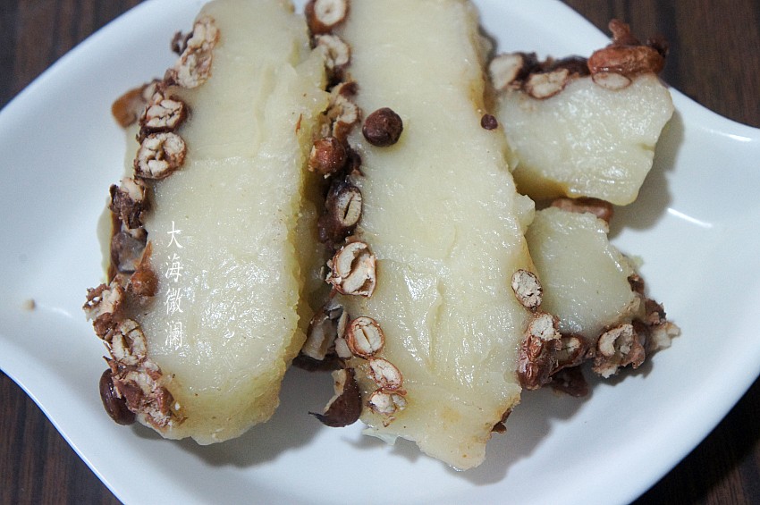 这是自家蒸的年糕,提前在锅中蒸透,晾凉备用。