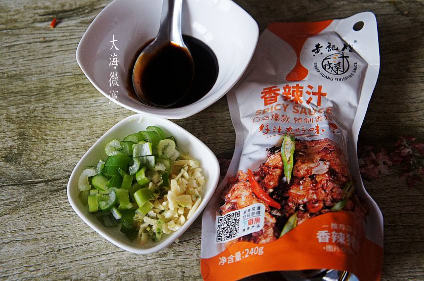 葱去皮洗净切碎,大蒜、洋葱去皮洗净切碎,没有韩国辣酱,我用的香辣汁替代,也很棒。