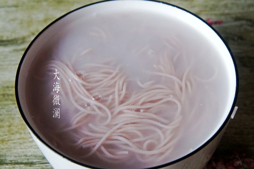 冷冻的米线提前一晚上就拿出来解冻,解冻后的米线过冷水冲洗一下,另起锅加入适量的水,水开下入米线煮3分钟左右,边煮边搅动,煮好的米线,捞出,放入冷水中浸泡5分钟左右。关火后,顺便把油菜扔进汤锅烫一下就捞出过冷水后备用。