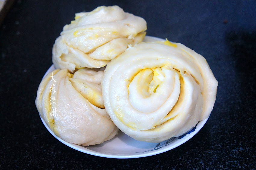 取一份一分为二,两片折叠起来,拉长后扭在一起就是一个花卷。这个花卷的样式随自己喜欢做,也可以拉长扭成麻花的样式,或者用筷子压一下都可以,随自己喜欢的样式做吧。