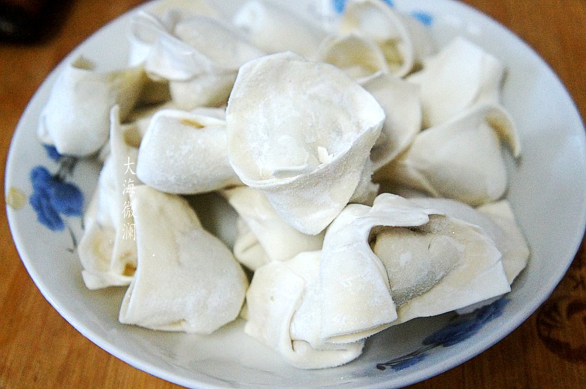 自家早已包好的速冻云吞,可以根据人数确定数量,吃多少煮多少,最好不剩,今天煮的是两人份。