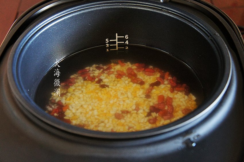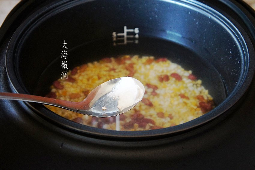 加点小苏打,这是很关键的一步,煮大碴子粥一定要放小苏打,不但容易煮烂,而且口感特别好,同时还营养脾胃。