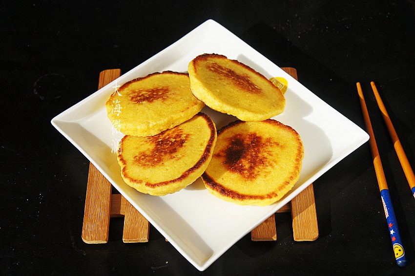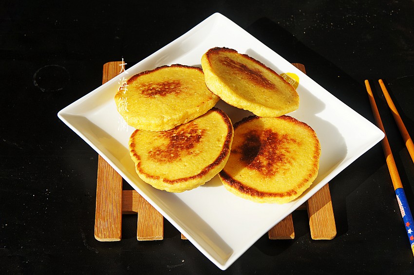 翻面烙熟,没想到烙出来的饼还是相当的好吃。有玉米面的饼就是松软,还有玉米面的香味,不像发糕那样细腻,吃起来口感蛮好的,越嚼越香的感觉。