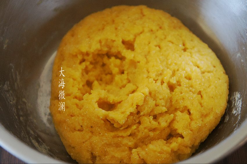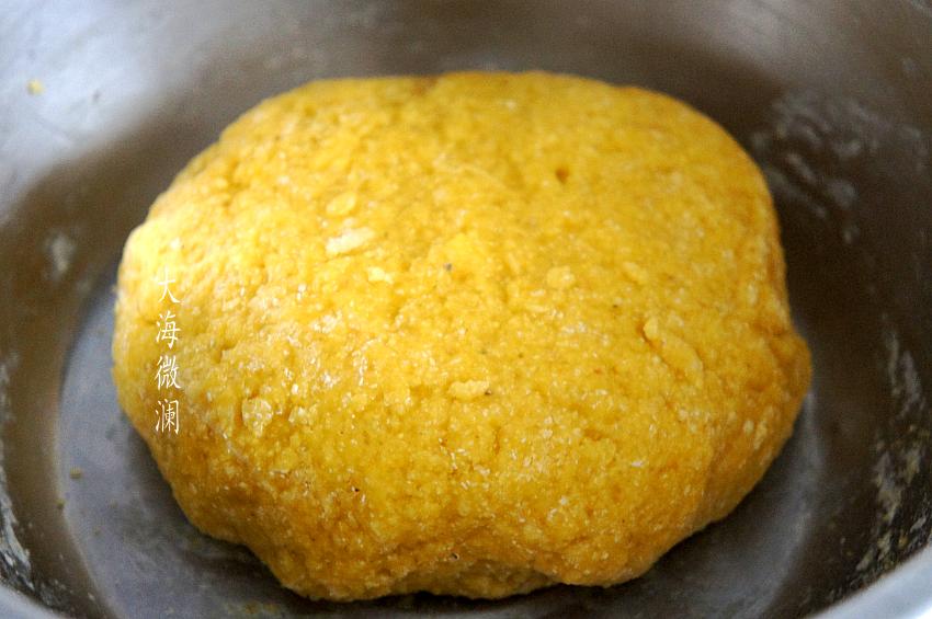 发酵好的面团是这样的,是不是加了玉米面的结果。
