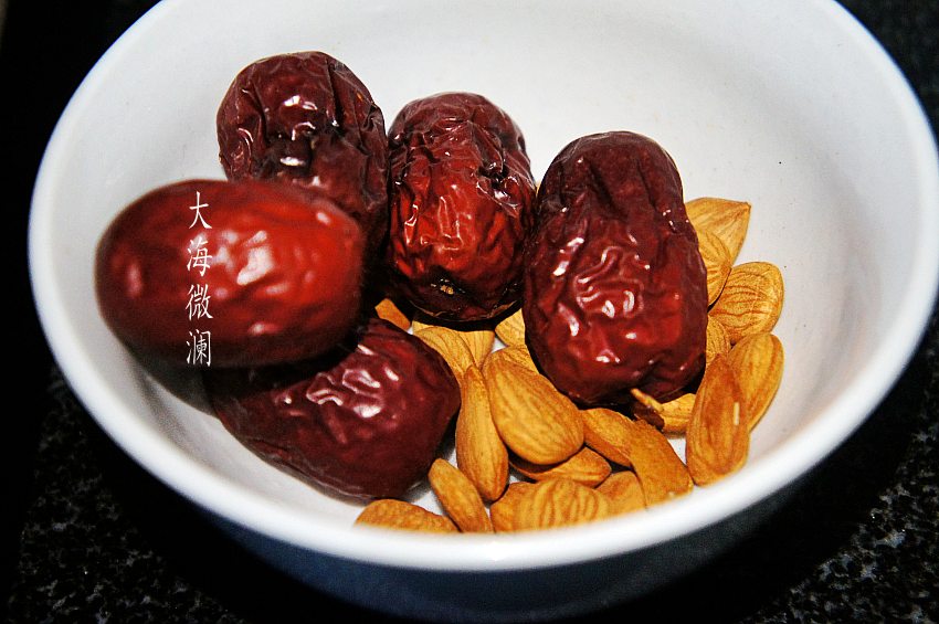 大枣提前冷水浸泡30分钟左右,反复清洗干净,大杏仁也是春季必吃的食物,洗净顺便扔进去几个,枸杞子也同时洗净备用。春分养生,要以胃气为本,只有胃肠好了才能吸收那些滋补的食物,在这个季节,可以多吃一些红枣等养脾的甜食,适当补充坚果类食物,如核桃、花生、杏仁、桃仁等,有助于提神去燥,增强人体抵抗力。
