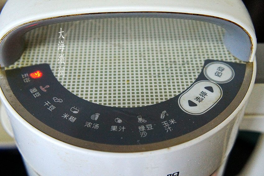 豆浆机接通电源,启动五谷功能,等待豆浆机自动完成的时间可以用来准备其他早餐。