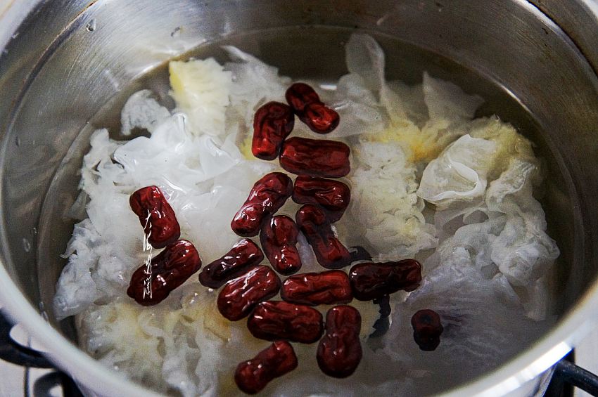 汤锅加入适量的水,下入红枣和银耳,大火烧开转小火,煮约10分钟左右。红枣,被誉为“百果之王”,是春季护肝养脾佳品,适合泡茶、煲粥、煲汤等,春天要经常做给家人吃。