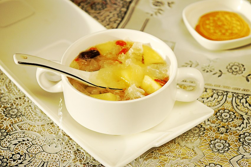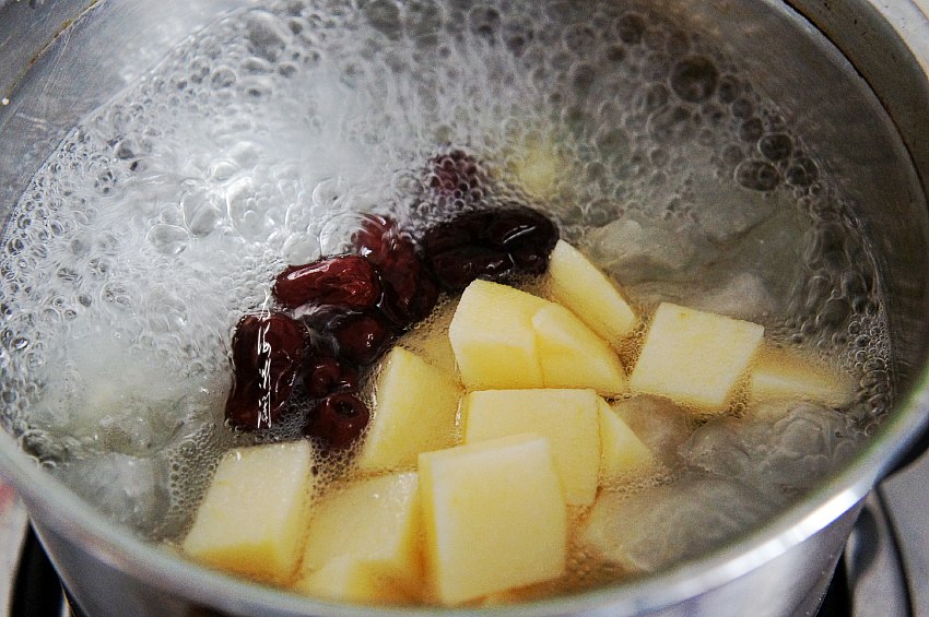出锅,软糯香甜的银耳苹果汤,喝一碗气定神闲,滋脾润肤细无声。
