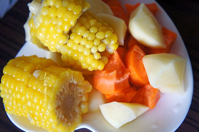 来过东北的人可能都吃过,这菜吃了上瘾,总是令人念念不忘,玉米的香,土豆的糯,豆角的面,胡萝卜的甜,每一种食材都是不同的口感,各种滋味回味无穷,汤汁泡饭绝了,所以一段儿时间不吃真是想得慌。这菜没有肉也香,何况咱吃的是减肥餐,根本就没放肉。乱炖一锅出,过去在农村只有秋天才能吃到,其实农村也是素炖,不放肉的,一锅菜能满足一家人的需求,各取所需,所以这菜特别受欢迎。现在物资极大丰富,什么季节都可以享受它的美味。我家为了能随时吃上这道菜,秋天会特意冷冻一些嫩玉米和油豆角,东北的油豆角才好吃,冬春季一样可以随时般上餐桌。每次都要炖一锅,少了不够吃,其中土豆和玉米都是可以用作主食的,有饱腹感,而且这些食材都富含粗纤维,常食易消化,好吃不长肉还能促进减肥瘦身。