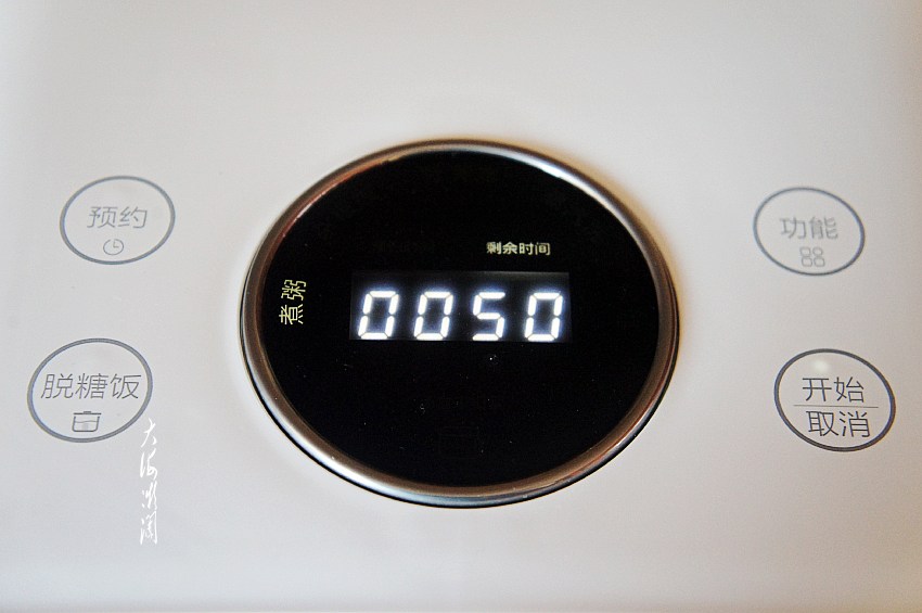 连接电源,选择煮粥功能,启动开关,水开计时时间是50分钟。如果做早餐,可以提前将米放入锅中,预约时间,早上起来,粥就煮好了,非常方便,我最喜欢的做法。