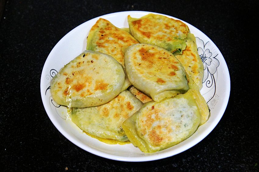 若上盖压的不实,煎得不够理想,可以翻面再煎一下。