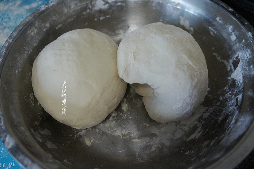 面粉一分为二,一半开水烫面,一半常温水和面,然后晾凉,揉在一起,盖上保鲜膜饧着。烫面口感好,柔软,凉了也不硬,也可以全烫面,更柔软,不过半烫面柔软劲道,有弹性。