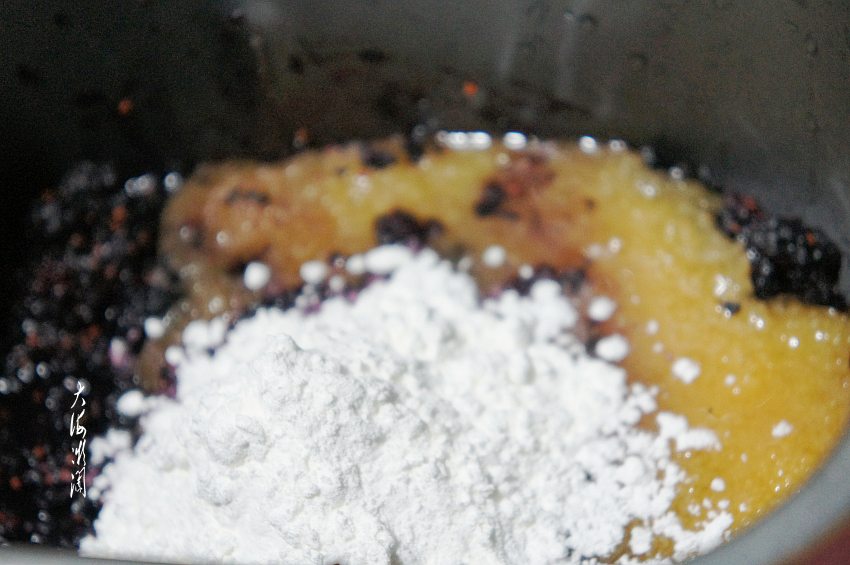 加入蜂蜜和玉米淀粉,如果有柠檬,可以挤入点柠檬汁,天然的防腐剂,可以延长保质期。我家里没有柠檬了,所以没放。