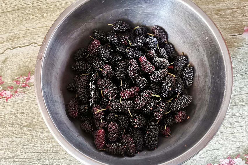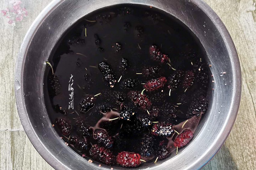 1、用盐水清洗桑葚果可以起到杀菌杀虫的作用,喜欢细腻口感可以用料理机把桑葚果打碎,再加工,不过我喜欢有果粒的口感。