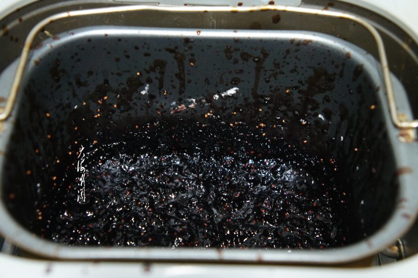 时间到,打开面包机,酸甜可口的桑葚果酱就做好了。