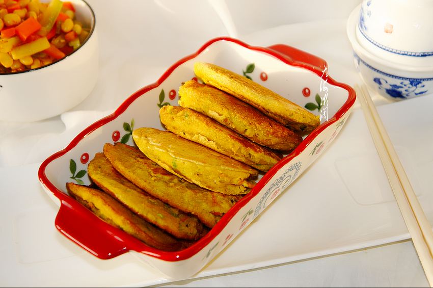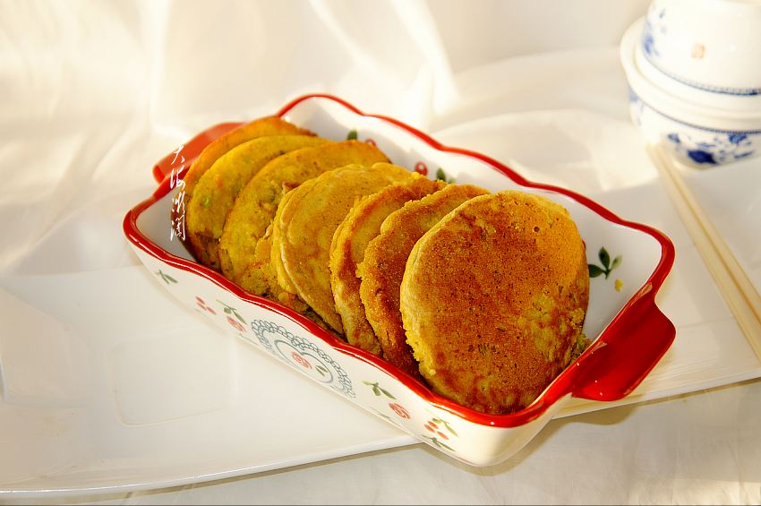 【玉米面蔬菜饼】所需食材:玉米面2勺;面粉1勺;鸡蛋1个;芹菜叶适量;胡萝卜丝适量;油适量;盐适量;胡椒粉适量;葱适量;小苏打少许。