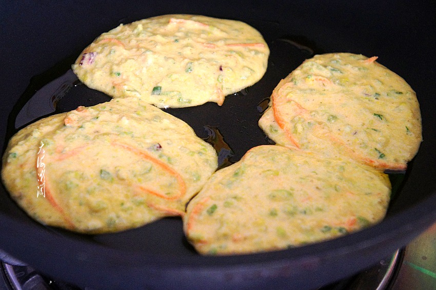 一面烙好,翻面煎另一面,两面金黄就OK了。是不是非常简单,快手早餐蔬菜饼,美味还有营养。