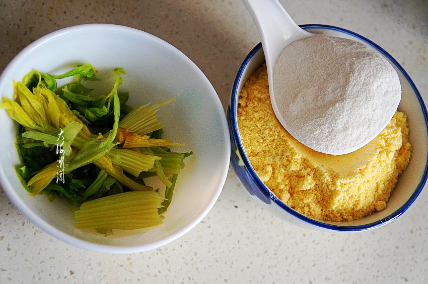 取大盆,将切碎的芹菜叶、2勺玉米面和1勺面粉倒入盆中,打入鸡蛋,加入切碎的葱、盐、胡椒粉、小苏打大约2g左右。玉米面中丰富的膳食纤维,能促进肠蠕动,缩短食物通过消化道的时间,减少有毒物质的吸收,对减肥瘦身有利。而且玉米面营养丰富,常食对提高身体的免疫力、记忆力,都是有着很好的效果。