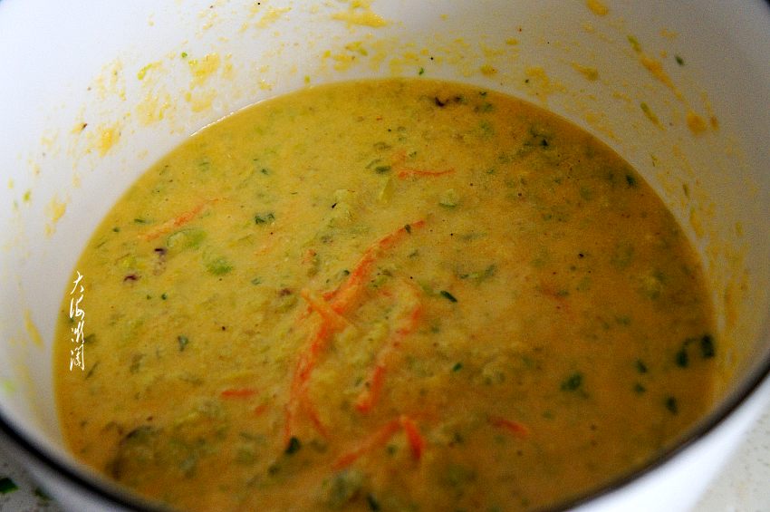 加入少许胡萝卜丝,再加入适量的水,搅拌均匀,比较黏稠的状态就好,然后饧5分钟左右。喜欢吃鸡蛋的也可以打入2个鸡蛋,鸡蛋被人们称作“理想的营养库”。营养学家称之为“完全蛋白质模式”, 每天吃一个鸡蛋不但保护肝脏,健脑益智,还能延缓衰老,美容养颜。