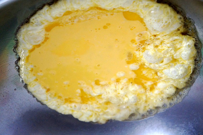 鹅蛋打散,少许兑点料酒和水搅拌均匀。兑料酒去腥味,换成白酒味道更鲜美。加点水更滑嫩,也可以不加。炒锅加入适量的油,油开倒入蛋液,用铲子轻轻滑动成块,然后取出备用。