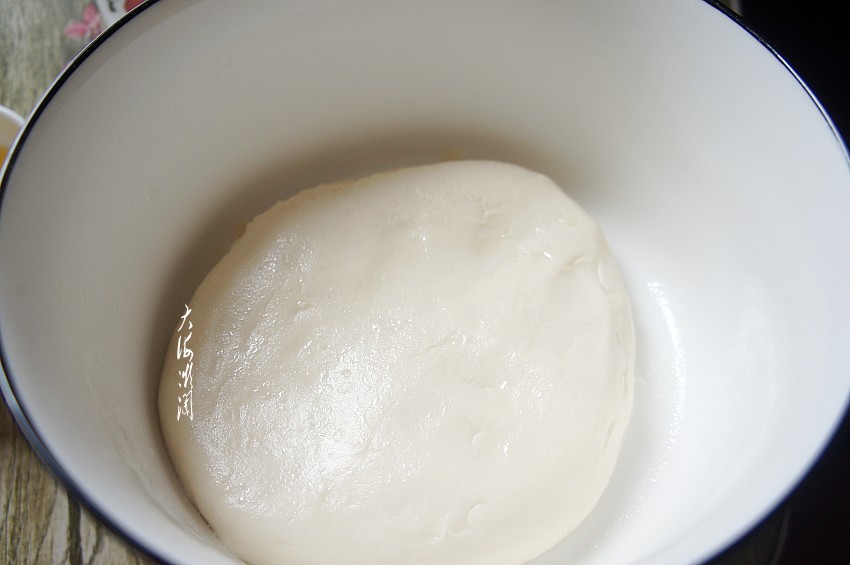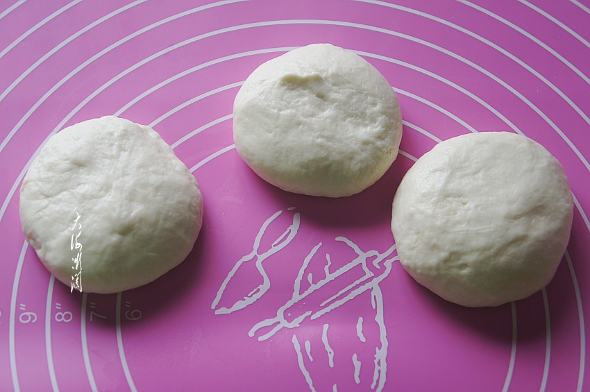 饧好的面团均匀的分成3个面剂子,这面团饧得很好,特别柔软,因为抹了油,操作起来也不粘。