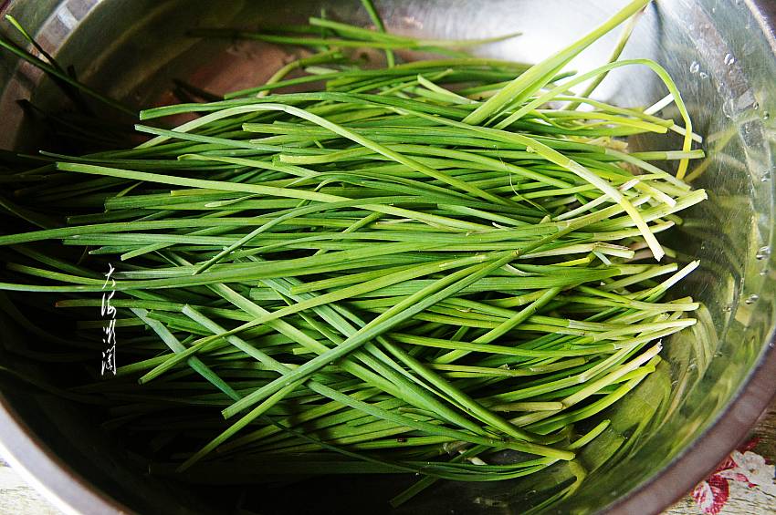 韭菜摘洗干净,看看这韭菜可不是当地大棚的头刀韭菜,而是野韭菜,