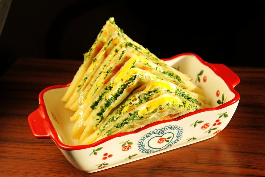 1、这个韭菜盒子与平时烙的韭菜盒子不同之处是鸡蛋无需提前煎熟,无需打散,烙出来的饼中是一个完整的鸡蛋饼,简单又快手,好看又好吃。