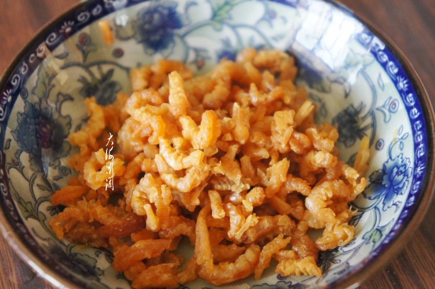 浸泡后的虾仁再重新清理一下,去掉杂质以及虾壳,反复漂洗干净。
