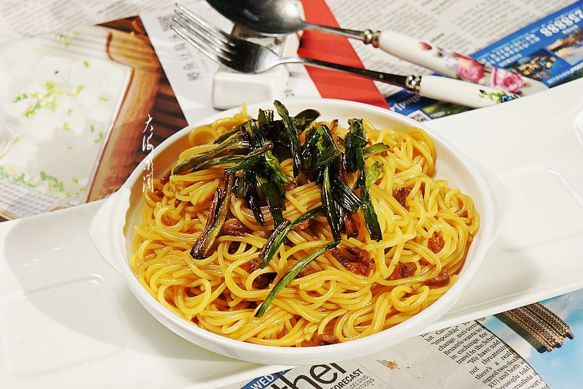 【葱油面】所需食材:玉米挂面300g;油适量;盐适量;蚝油适量;海鲜酱油适量;干虾仁1把;香葱适量;大蒜适量;白糖适量;胡椒粉适量。