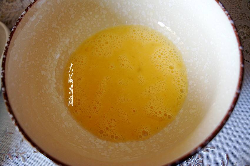 准备个无水无油的大碗,鸡蛋打入碗中,用手动蛋抽打散。