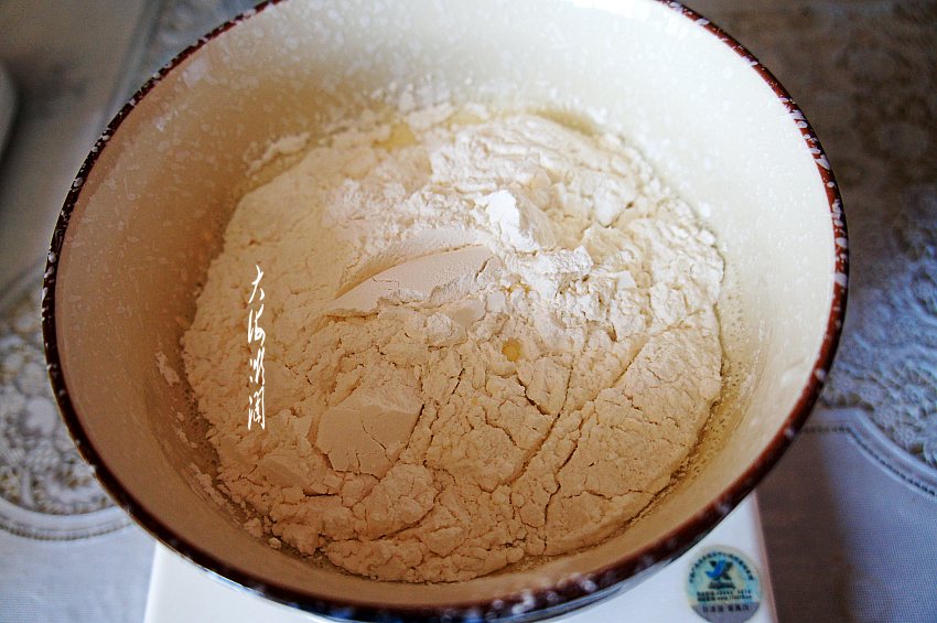 再把低筋面粉筛入碗中,用蛋抽或者刮刀搅拌均匀,面糊要无颗粒,无干粉。