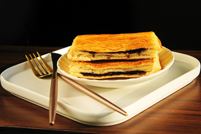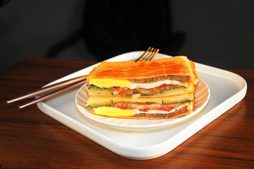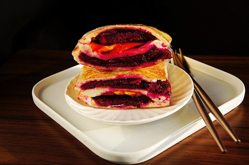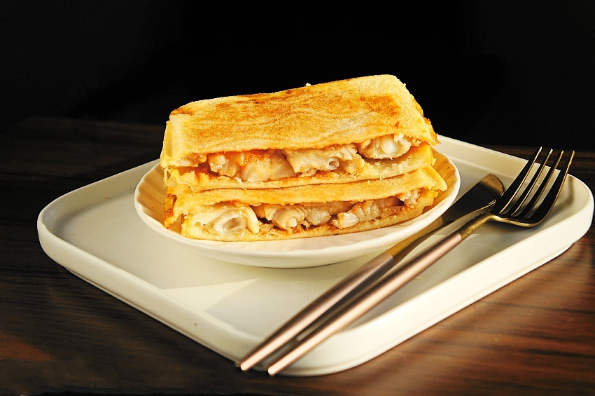4、5分钟时间到,取出压好的三明治。榴莲控们不可错过的美味早餐三明治。