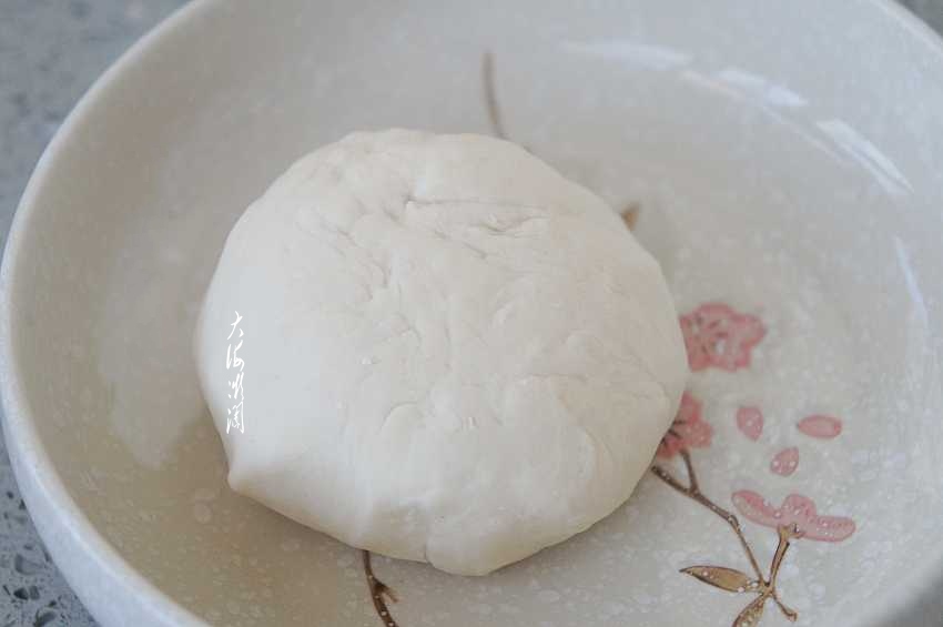 高筋粉加入蛋清少量的温水和成面团,面团略硬一点,揉匀饧半小时以上。也可以用全蛋液,那样颜色会发黄。
