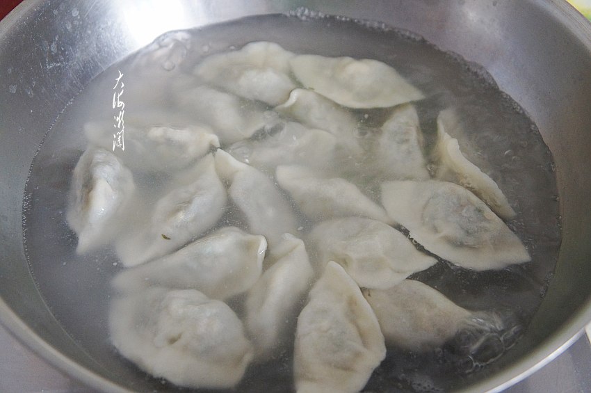 3、煮饺子这方法管用,水开下入饺子,煮开浇点冷水,再煮开再浇点冷水,第三次煮开关火,捞出,饺子煮的恰到好处。