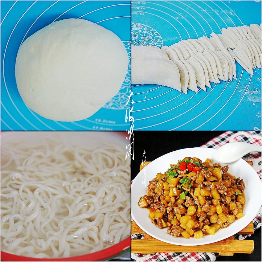 东北农村最传统的手擀面,小时候没有机器,都是这样做的手擀面,大面板大擀面杖,做起来可带劲了,加猪肉土豆丁卤,那面可香了,吃不够的家常美味。赶上周末,有时间可以试试自己动手给家人做一碗纯手工手擀面,比买的面可是好吃多啦。