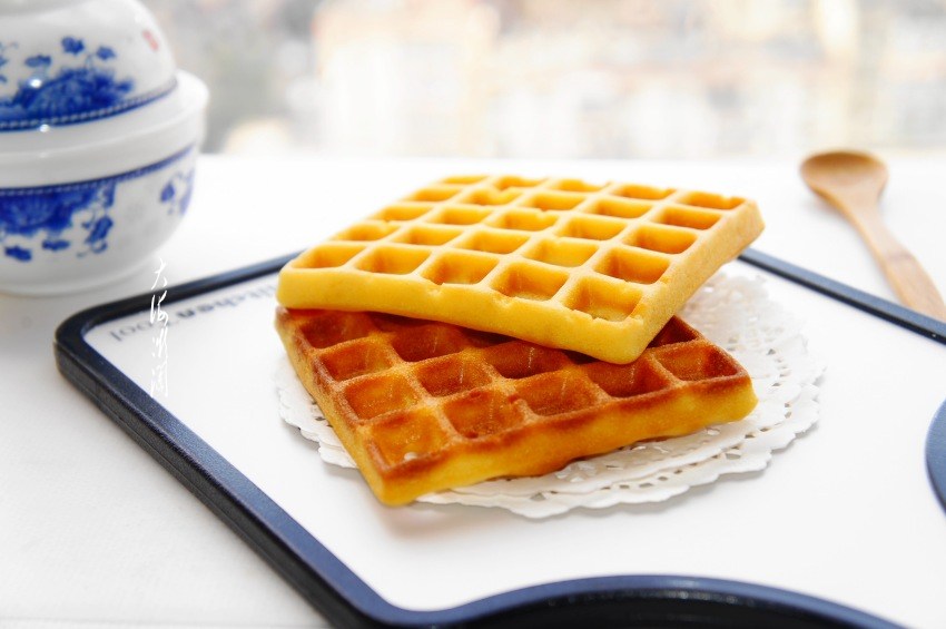 华夫饼,华夫饼口感比买的都好吃,烤两炉,一炉火大了,蛋糕液放少了,口感特别酥脆。另一炉灌满模具,哇!出炉真是漂亮,所以华夫饼你有两个选择,火大的酥脆,火小的松软,就看你爱吃哪一口了。