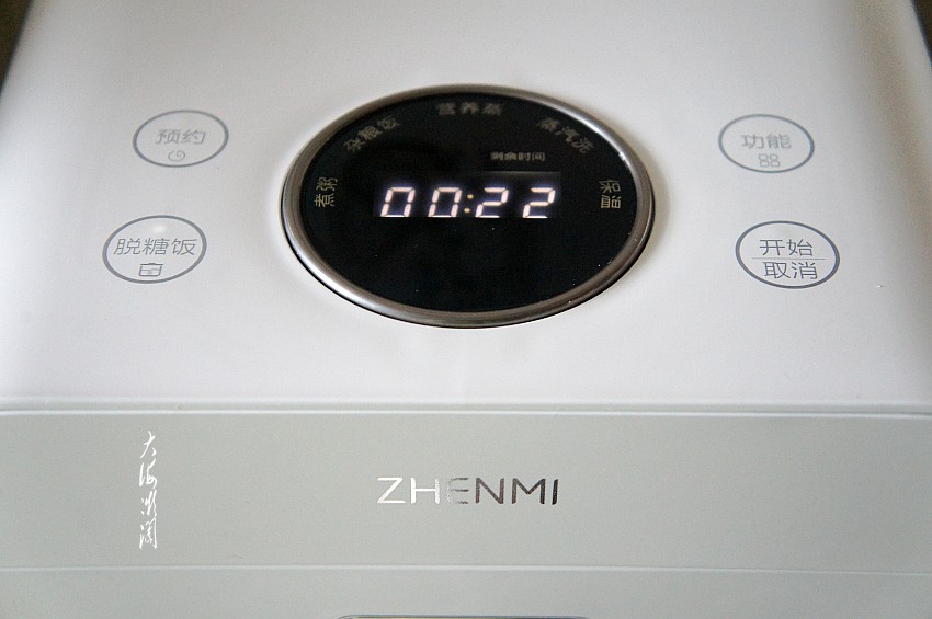 盖上电饭煲的盖子,接通电源,启动“脱糖饭”模式,系统默认时间是22分钟。