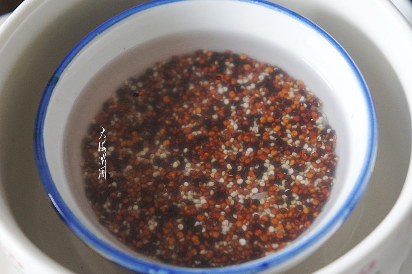 三色藜麦在蒸煮前,需要冷水浸泡,煮粥冷水浸泡20分钟以上,口感更软更好吃。蒸食需要提前浸泡1~2个小时,藜麦高膳食纤维,需要长时间吸收水分变软。