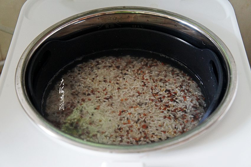 藜麦反复淘洗干净,冷水浸泡1小时以上,也可以不泡,我看朋友分享不泡做出来的饭也挺好,不过,我每次都浸泡一下,感觉泡后米粒才能伸展开,随个人喜欢操作吧。