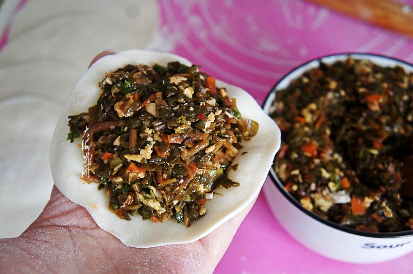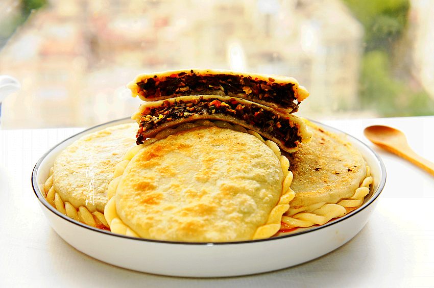 这个馅饼可以皮很薄馅很大的,素馅吃的就是馅,皮薄馅大才好吃。