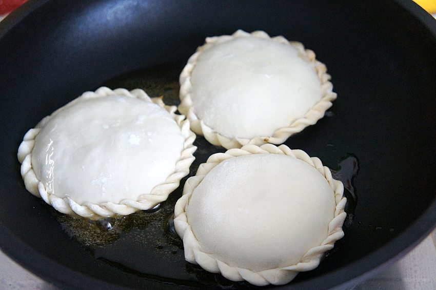 平底锅刷底油,放入太阳花盒子,两面煎至金黄即可出锅。