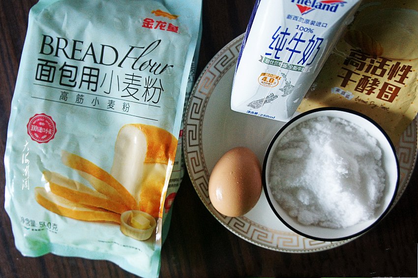 准备食材,做面包对面粉要求不是很高,可以用专用面包粉,口感最好,也可以用高筋粉或者全麦粉,普通面粉做出来也好吃,只是口感上有差异。