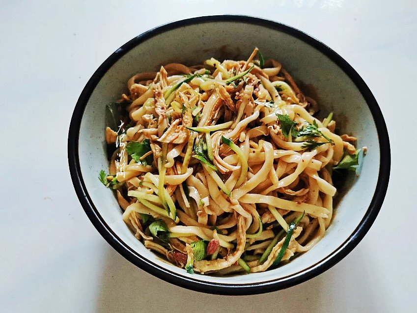 这碗麻酱鸡丝凉拌面做法非常简单,鸡胸肉提前煮熟,撕成丝,面条煮熟过冷水,加一些自己喜欢的食材一拌就OK了,清凉解暑,爽口开胃。还可以放心吃,不长胖,因为鸡胸肉不但营养丰富,还是高蛋白低脂肪食物。