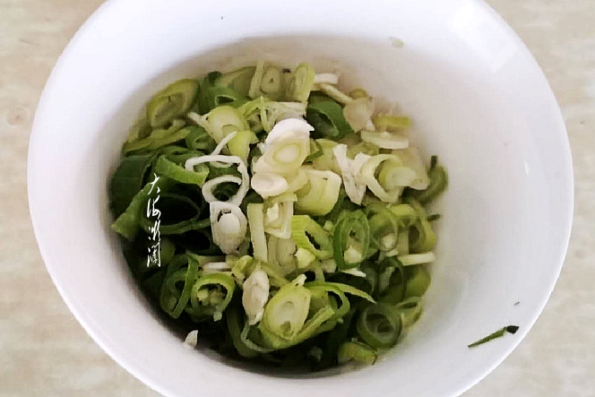 小葱去皮洗净切碎,单独放在一边,吃的时候喜欢这个味道的可以加点,有人不喜欢葱味就不加了。