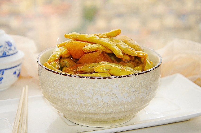 土豆切滚刀块。土豆被称为“十全十美”的食物,也是众所周知的抗衰老食物,有很好的呵护肌肤、保养容颜的功效,同时因含有丰富的膳食纤维可以起到通便排毒和清肠刮油的作用。减肥的路上,可是非他莫属。