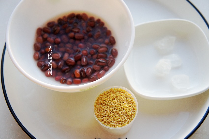 但是赤小豆是一种性质微寒的食材,不宜常食,与小米搭配,就变成性质温和的食物了,小米是我们熟知的滋补食材,属于粗粮的一种,低脂肪高蛋白质,有滋补人体,养血补血,美容养颜,保护心血管健康,健脾养胃等作用,富含纤维素,能促进消化,有利于安神,十分适合用来做减肥期间的早餐,既营养饱腹又不用担心长胖,小米还具有养胃的效果。二者搭配不仅能清热除暑,还能健脾利湿。这样一来,体质一般的人经常食用这道米糊,就不会给脾胃功能带来不利影响了。