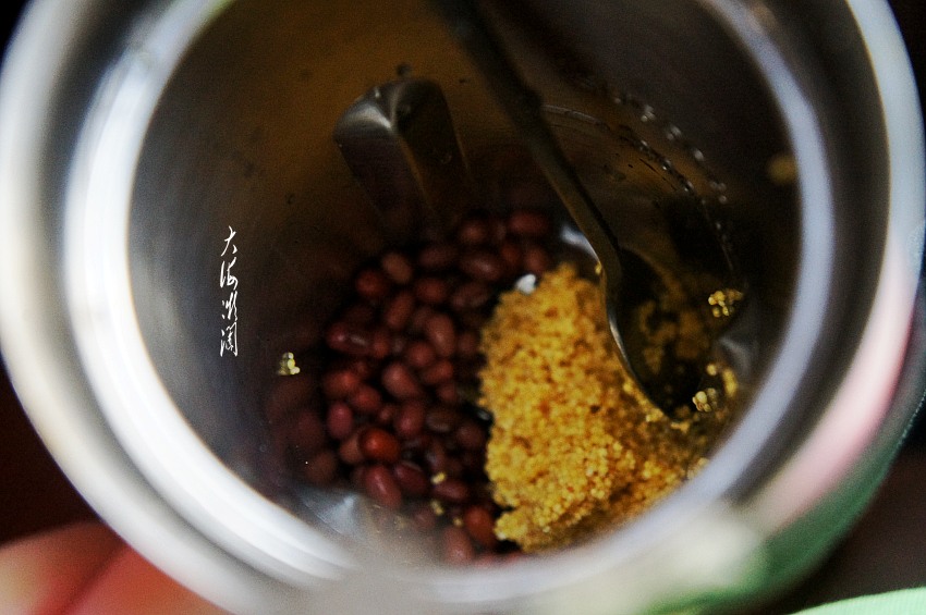 小米淘洗干净,将淘洗干净的小米、赤小豆放入搅拌杯中。