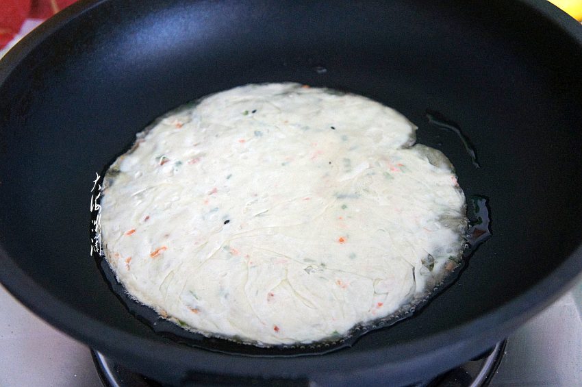 平底锅无需加油,手抓饼的油本身就不小,直接入锅烙就好了,所以烙这个饼绝对是零失败哈。